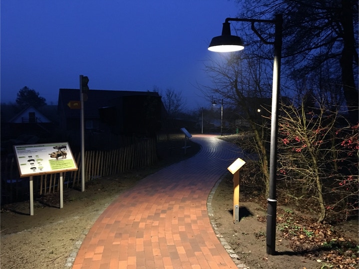 Neben dem neuen Wegekonzept wurde die Beleuchtung mit neuen Mastleuchten und Anschlüssen für die vorhandenen Pollerleuchten neu installiert.