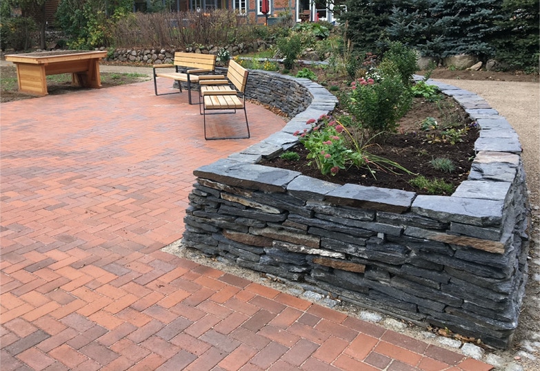 Die Nebenwege wurden anstelle der Polygonalplatten mit wassergebundener Decke befestigt. Als Einfassung wurde der Granit Kleinstein verwendet, der aus dem Hauptweg aufgenommen worden war. Auch die Polygonalplatten wurden auf dem Hof wiederverwendet, indem sie am neu geschaffenen Picknickplatz als Hochbeet aufgesetzt wurden. Hier wurde zusätzlich ein für Rollstuhlfahrer unterfahrbares Hochbeet aufgestellt.