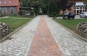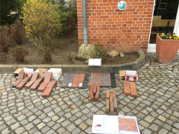 Der Hauptweg war mit Granit Kleinstein sowie Granit Großstein befestigt, und die Nebenwege im Park bestanden aus sehr unebenen Polygonalplatten. Um die Fläche für Rollstuhlfahrer besser befahrbar und für seheingeschränkte Personen kontrastreicher zu gestalten, entstand die Idee, den mittleren Teil durch rötlichen Pflasterklinker zu ersetzen. Diese Planung wurde in einer Fotomontage simuliert. Anschließend wurden verschiedene Klinker bemustert, um den Pflasterklinker passend zu den alten Backsteingebäuden auszuwählen.