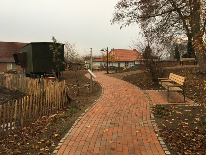 Das Lebenshilfewerk Mölln-Hagenow betreibt in Kneese einen landwirtschaftlichen Betrieb mit Wohn- und Arbeitsstätten für beeinträchtigte Menschen. Das Gelände sollte barrierefrei umgestaltet und für Besucher touristisch aufgewertet werden. Der Hauptweg war mit Granit Kleinstein sowie Granit Großstein befestigt, und die Nebenwege im Park bestanden aus sehr unebenen Polygonalplatten. Um die Fläche für Rollstuhlfahrer besser befahrbar zu machen…