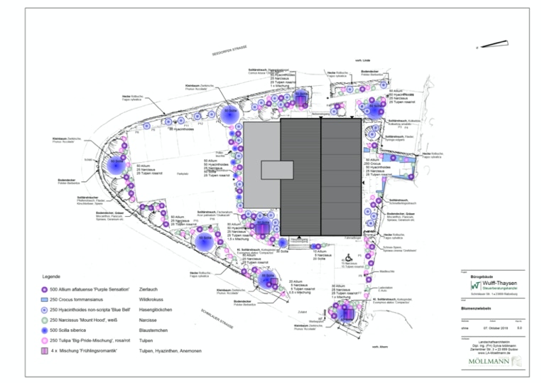 Im Herbst wurde ein Vorschlag für das Setzten von Blumenzwiebeln gemacht. Narzissen, Blausternchen, Tulpen, Anemonen, Hyazinthen, Krokusse und Zierlauch verlängern die Blühzeit und bieten den Insekten Nahrung zu einer Jahreszeit, in der noch nicht viele Pflanzen blühen.