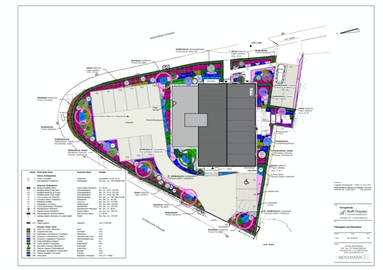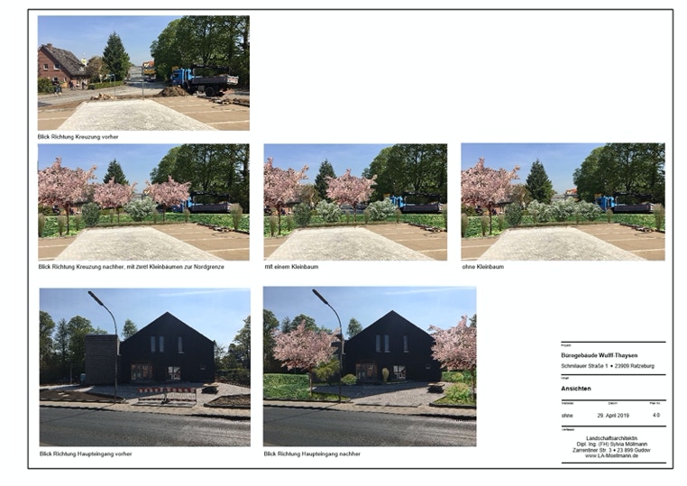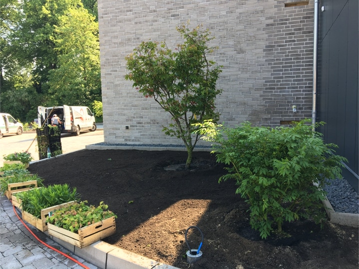 Nach dem Neubau eines Bürogebäudes inklusive der Wege und Parkplätze benötigten die Bauherren Hilfe bei der Bepflanzungsplanung.