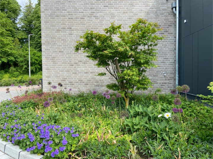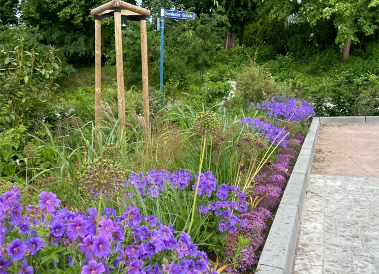 Ziel war es, eine abwechslungsreiche Bepflanzung zu schaffen, die zu allen Jahreszeiten attraktiv erscheint und verhältnismäßig einfach in der Pflege ist.
