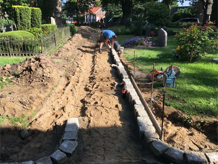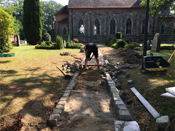Aufgabe war es, ein Konzept und eine Kostenschätzung zu erarbeiten und dies mit dem Kirchengemeinderat und der Kirchenkreisverwaltung Lübeck-Lauenburg abzustimmen. Mit allen Beteiligten wurde der genaue Wegeverlauf und die Wegebreite festgelegt. Nach einer Materialbemusterung fiel die Wahl auf einen Granit Pflasterstein in unterschiedlichen Größen, wie er bereits bei den anderen Wegen um die St. Marienkirche verwendet wurde.