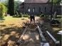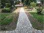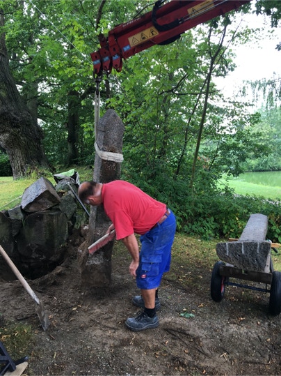 Das Höhersetzen der Pforte wurde durchgeführt, um mit den Pflasterarbeiten aus dem Wurzelbereich der Bäume herauszukommen. Beim Pflastern wurde zusätzlich auf vorhandene Wurzeln Rücksicht genommen und stellenweise statt Kleinstein wassergebundene Decke zur Wegbefestigung verwendet.