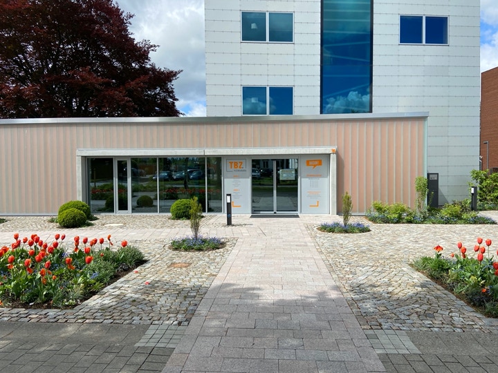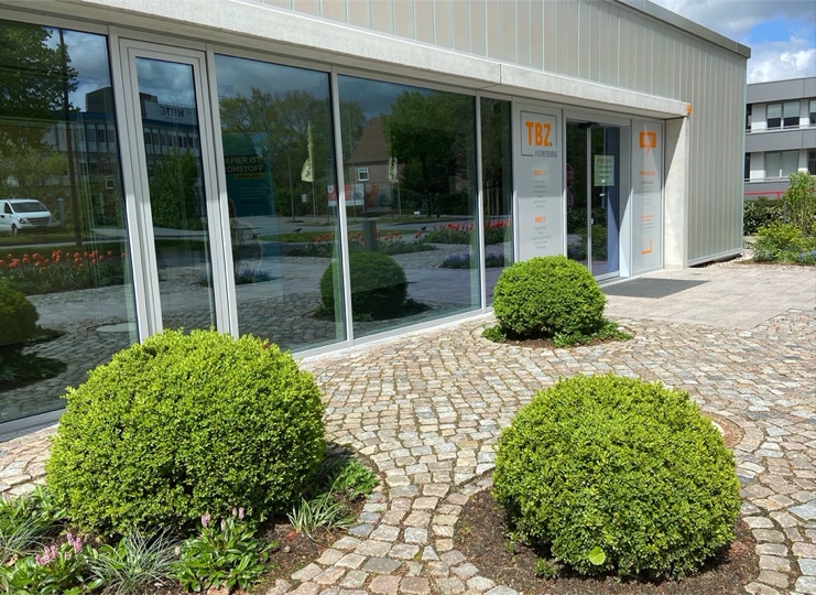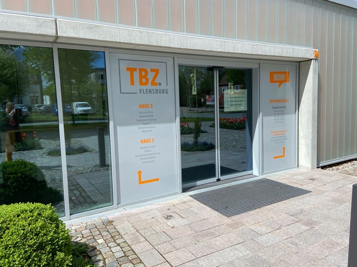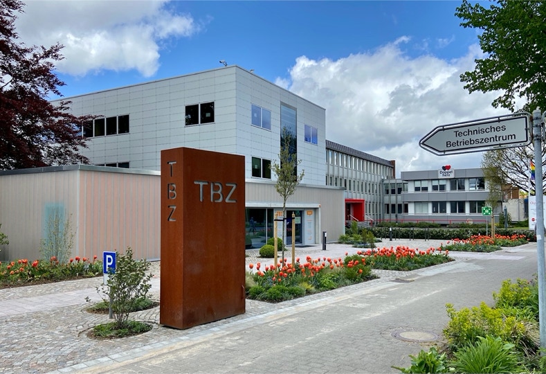 Das Technische Betriebszentrum (TBZ) ist zentraler Dienstleister für die Stadt Flensburg und zuständig für Straßenbau und Grünflächenpflege/Forst, Entwässerung, Abfallbeseitigung und Stadtreinigung. Am Hauptgebäude in der Schleswiger Straße wurde für die Kunden und Besucher ein neues Kundenzentrum angebaut.